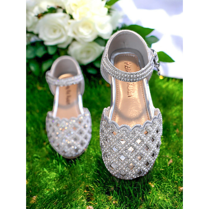 Girls' Sparkly Rhinestone Mary Jane Shoes – Scalloped Edge Fl...