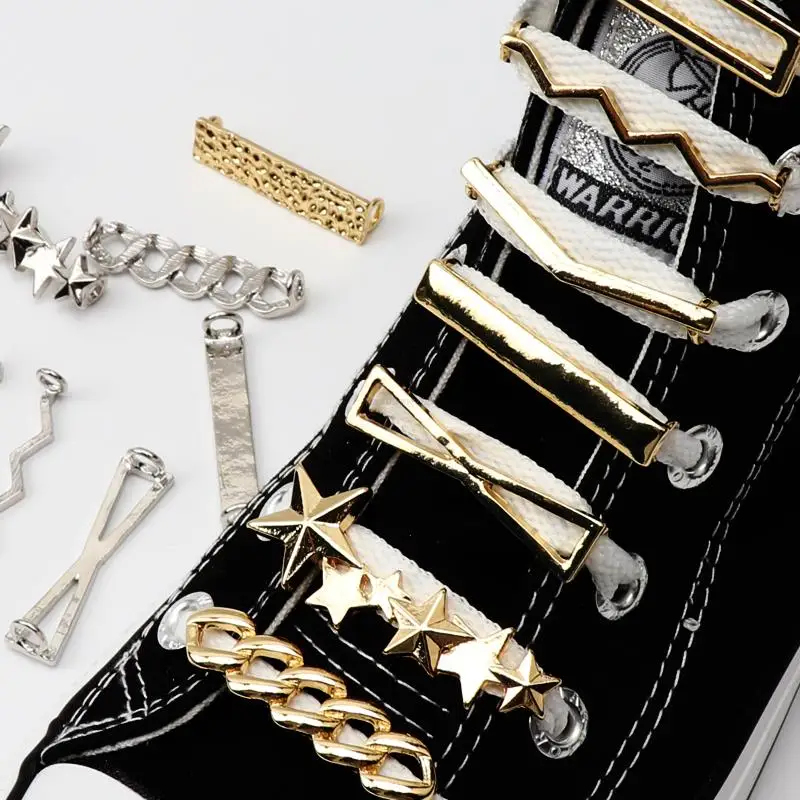 Simple Metal Shoe Charms Fashion Gold silver Sneaker Charms Girl Gift Shoe decoration DIY Shoelaces ...