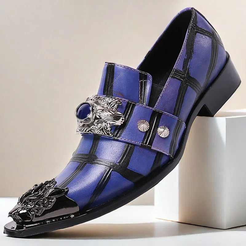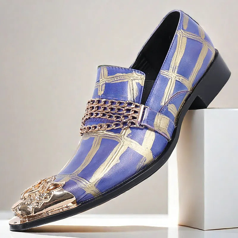 Men's Premium Cowhide Leather Loafers with Gold Tip Artistic Blue a...