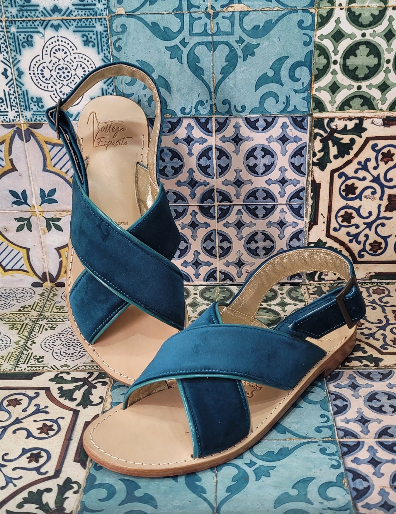 Blue Sky Capri Sandals suede Positano style - Handmade Capri sandal...