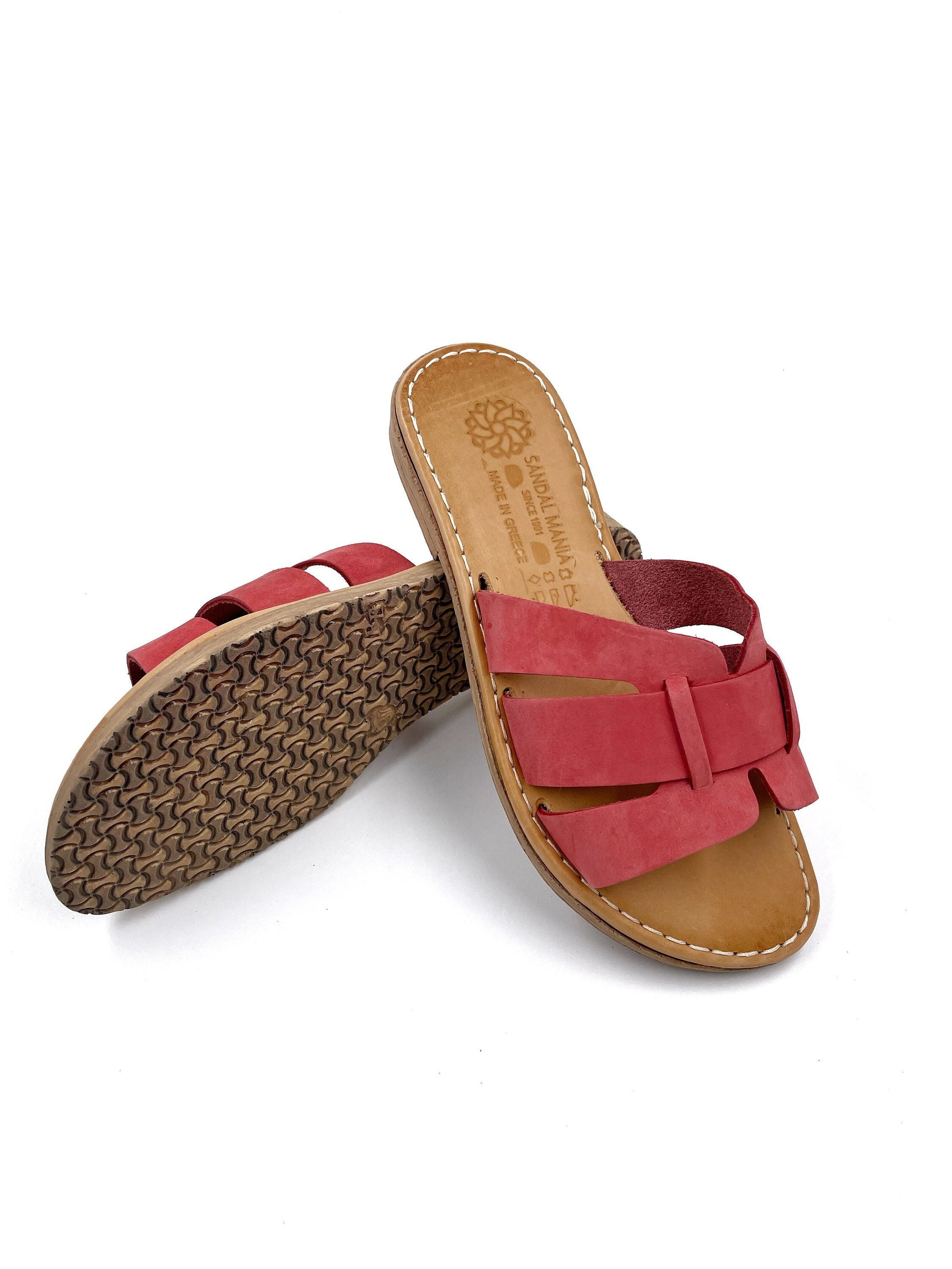 Slip On Flat Women's Sandals Flat Leather Sandals Greek Handmade Sa...