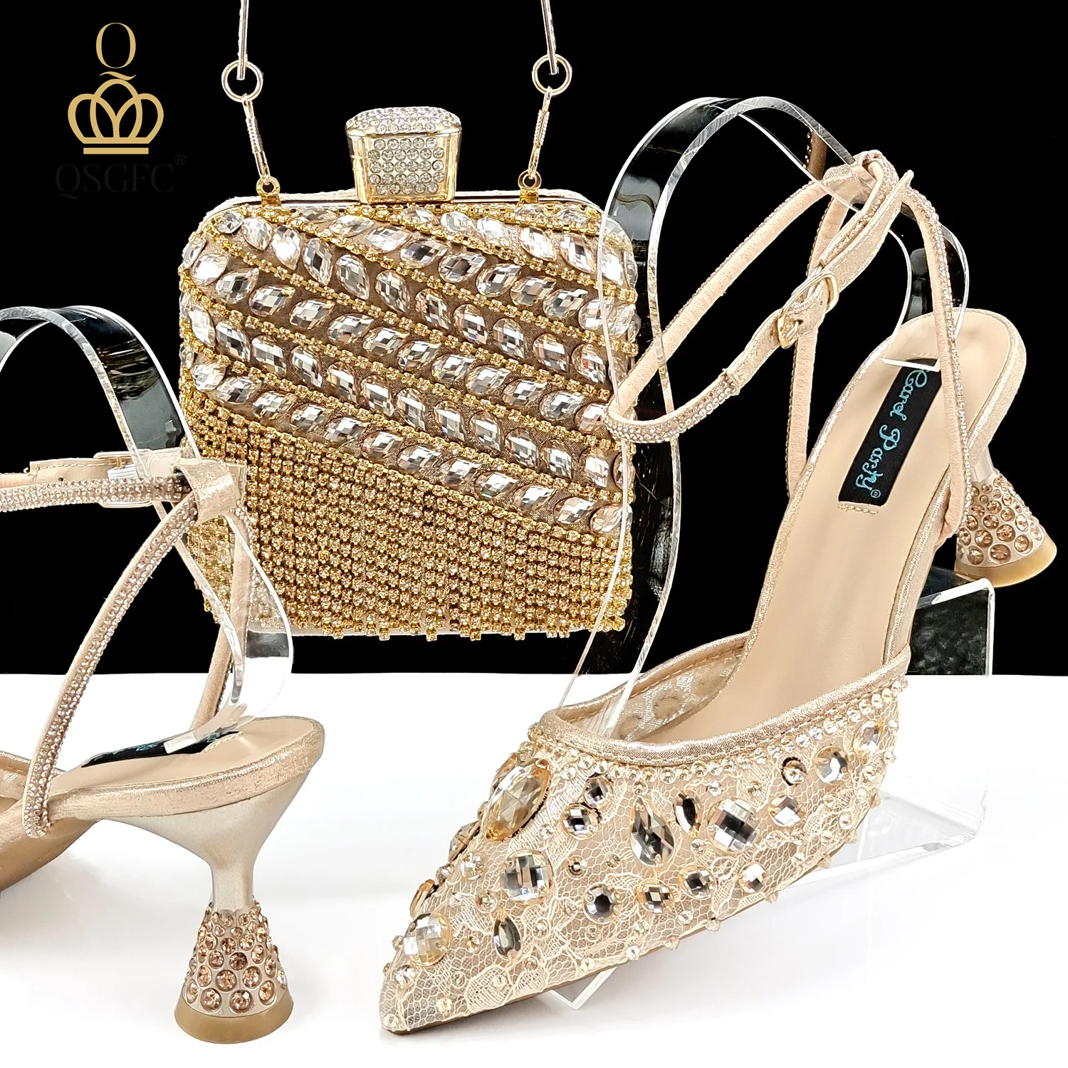 New Arrival Italian Women Shoes and Bag Set Decorated with Rhinesto...