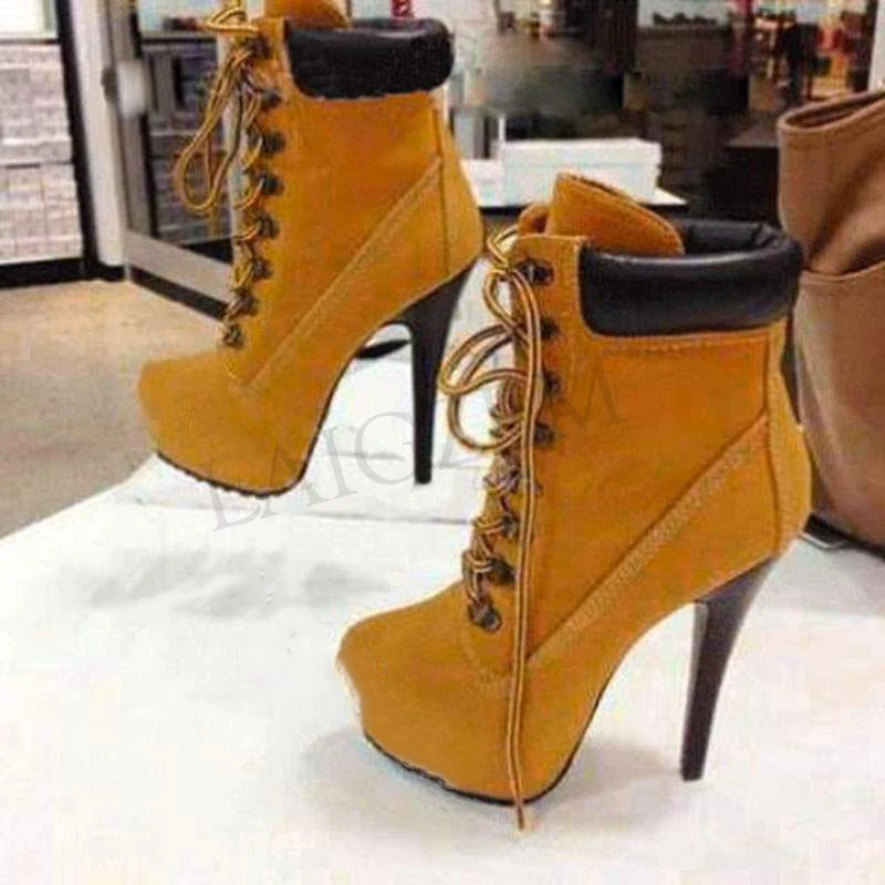LAIGZEM Women Platform Booties Stiletto Heel Lace Up Ankle Boots Chaussure Shoes Woman Botas Mujer L...