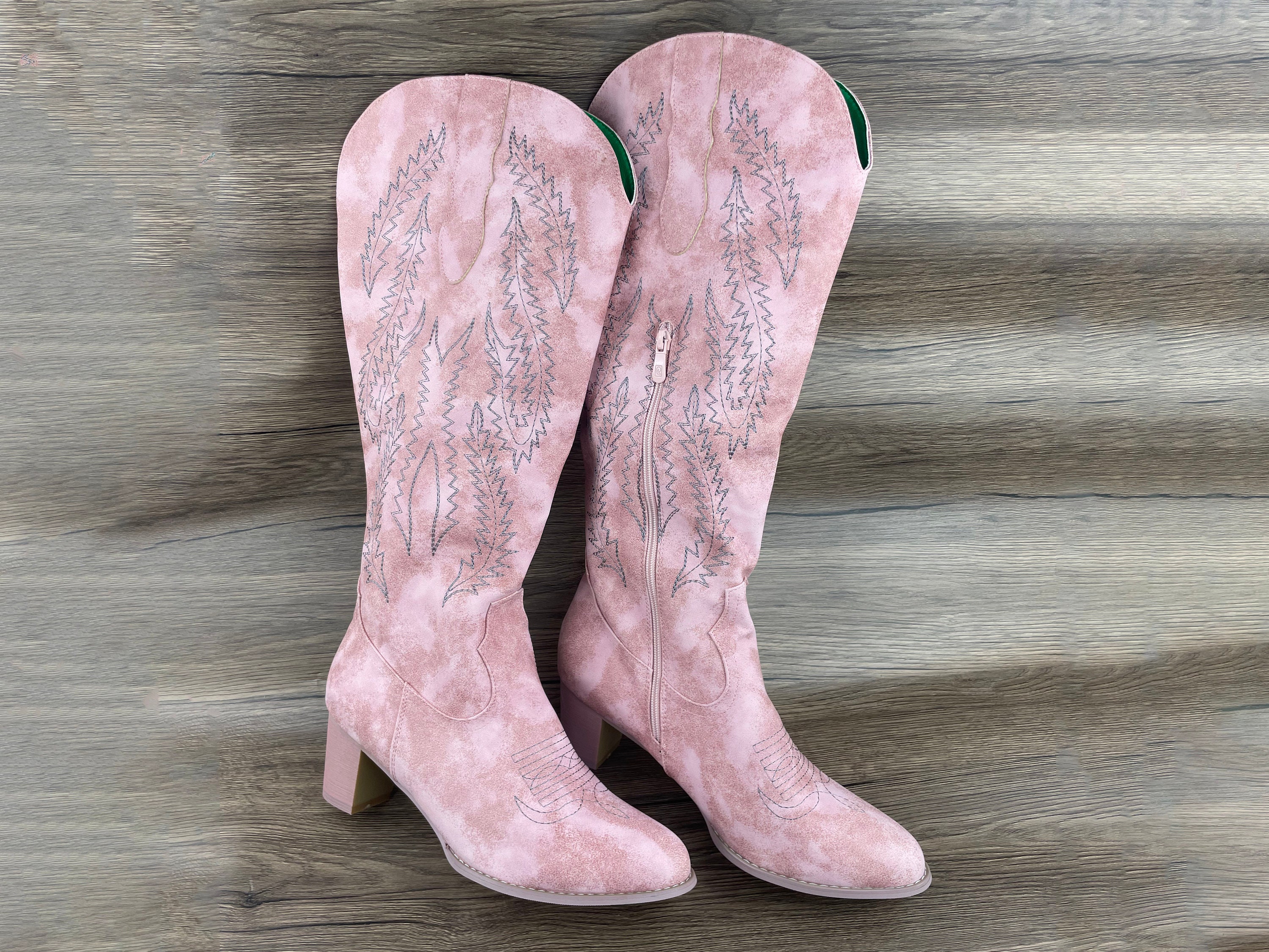 Retro boots, women's boots, pink boots, knight boots, Western cowbo...