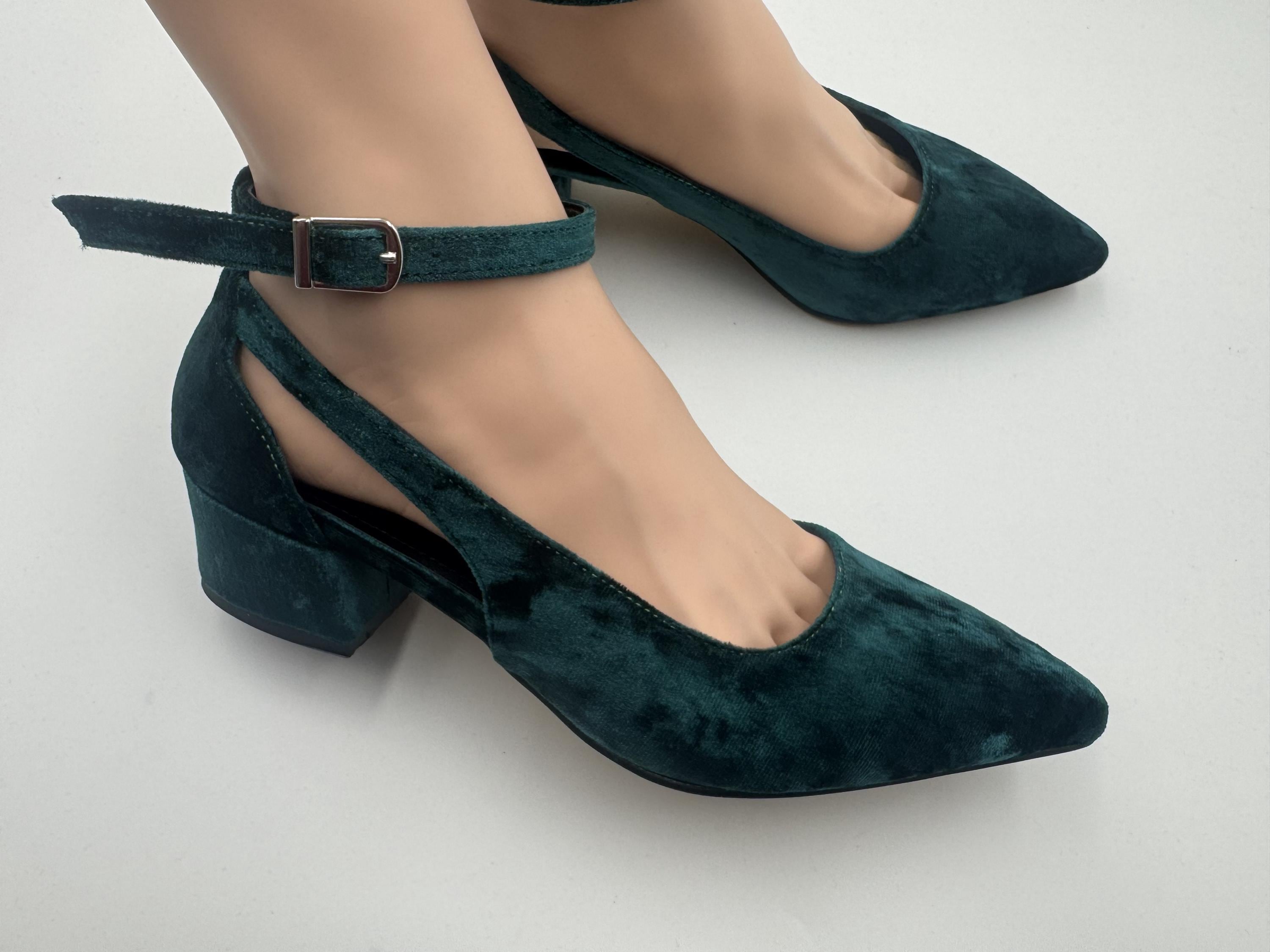*Color : Green *Material : Velvet *Pad insole : Yes *Heel height options : 1.2 in(3 cm) , 1.6 in(4 c...