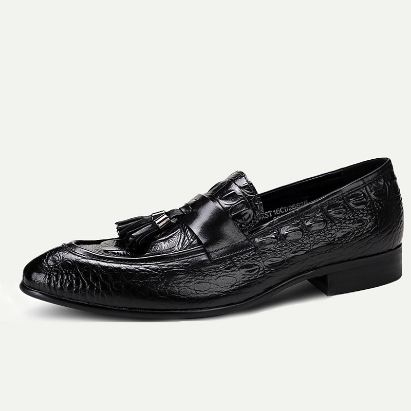 Men's Loafers Slip-Ons Wine Black Glossy Burgundy Crocodile Leather...