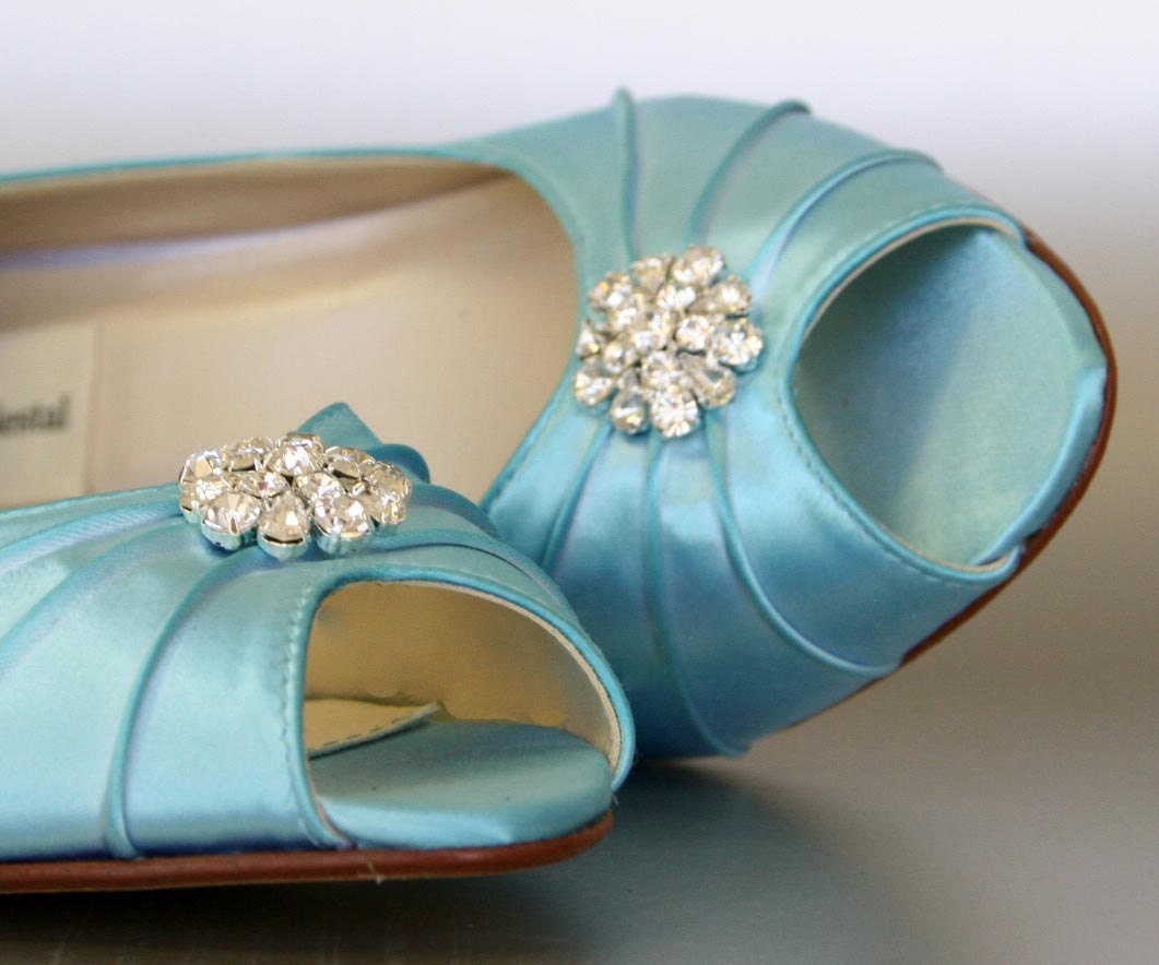 Aqua Wedding Shoes, Simple Bridal Shoes, Low Heel Bride Shoes, Ligh...