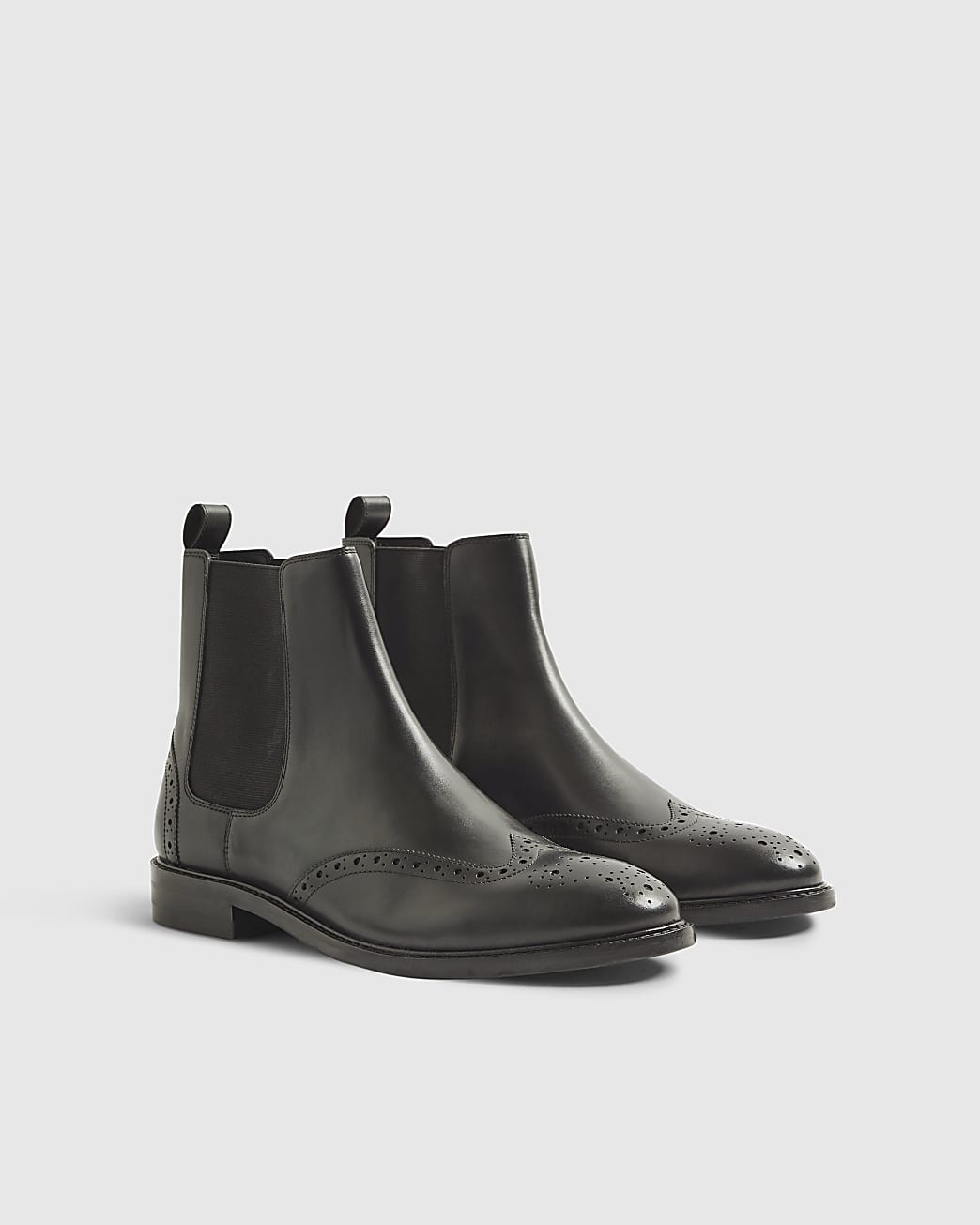River Island Mens Brogue Boots Black Leather - Size UK 6 | River Is...