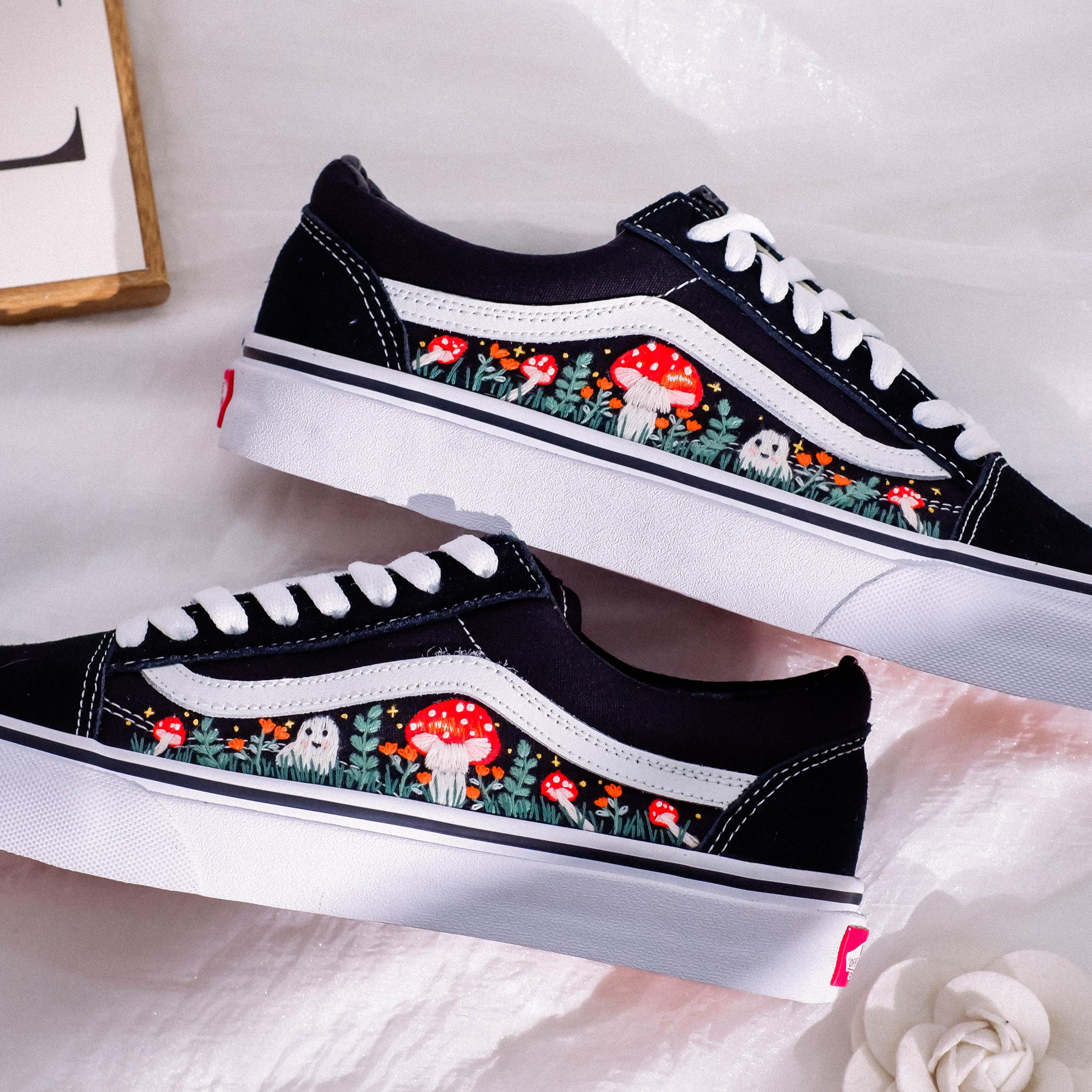 Embroidered Vans Slip On, Custom Vans Embroidery Mushrooms, Ghost, ...