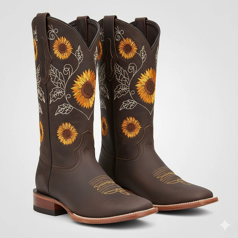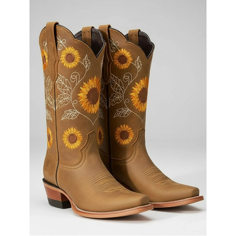 Women's Western Cowboy Boots with Sunflower Embroidery – Vint...
