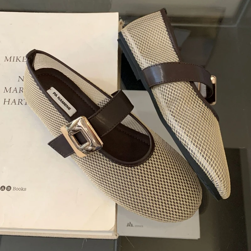 Mesh Breathable Ballet Flats Women Metal Belt Buckle Round Toe Shallow Comfy Beach Shoes Female Fash...