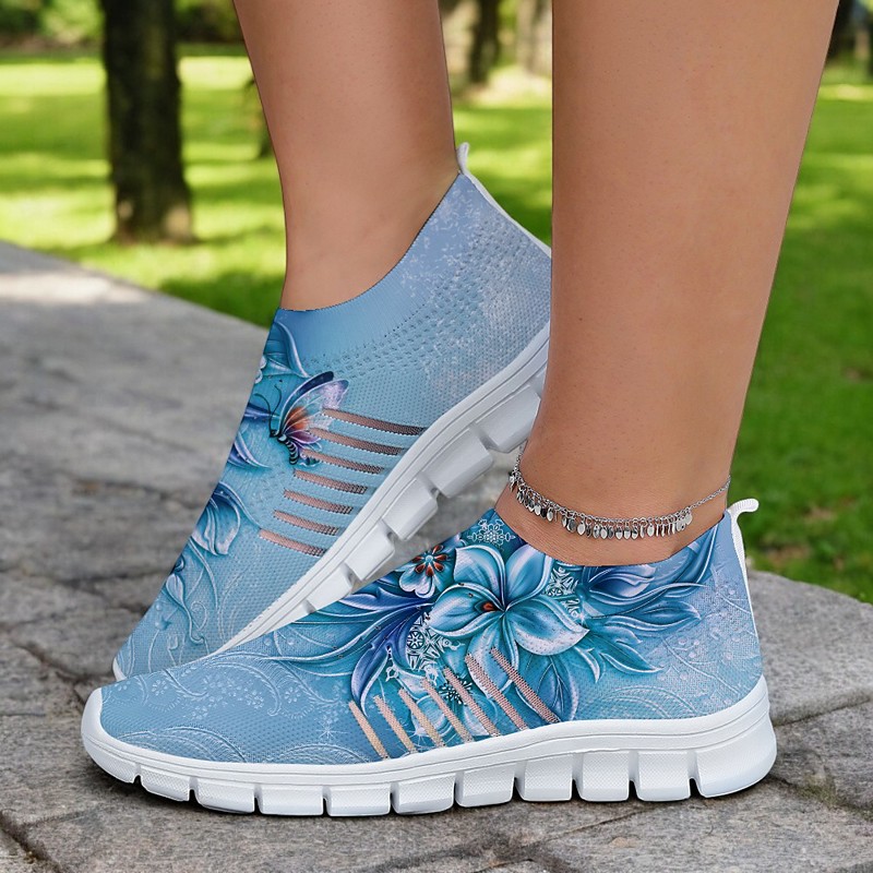 Floral Print Flyknit Sneakers with Breathable Upper, Lightweight So...