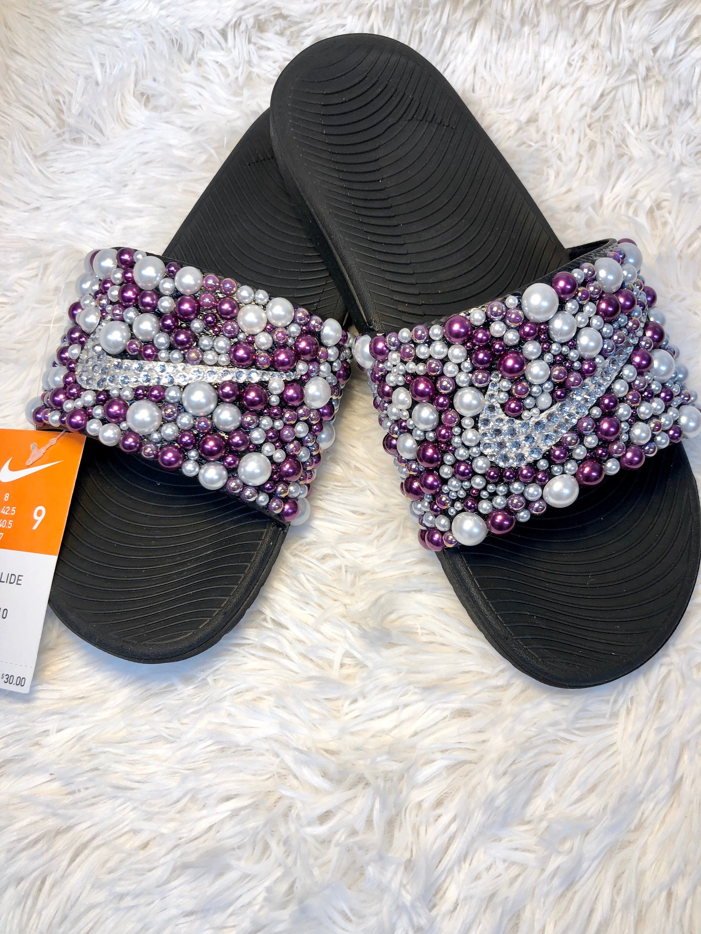 Bling Nike Slides | Purple, White, and Silver Nike Slides | Nike Sl...
