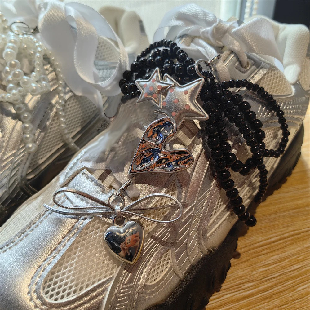 Lace Silver Bow Lace Shoelaces Decorative Buckle Pearl Bow Heart Shoe Chain Ballet Style Shoelace Fl...