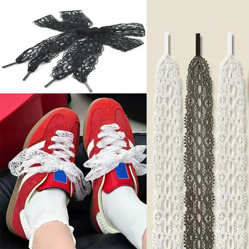1Pair Lace Braided Shoelaces 3CM Width Flat Lace Shoe Laces Fashion Ribbon Shoelace for Sneakers Bla...