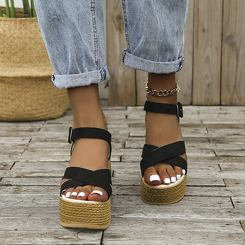 Category:Sandals; Materials:Suede; Season:Summer; Heel Type:Platform,Wedge Heel; Gender:Women's; Act...