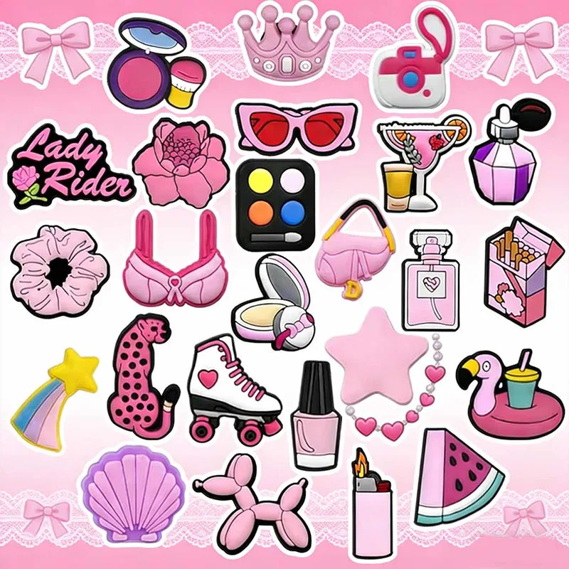 1/25pcs Pink Shoe Charms Women Girls Sandal Accessories Nail polish Perfume Shoe Decorations Pink Pi...