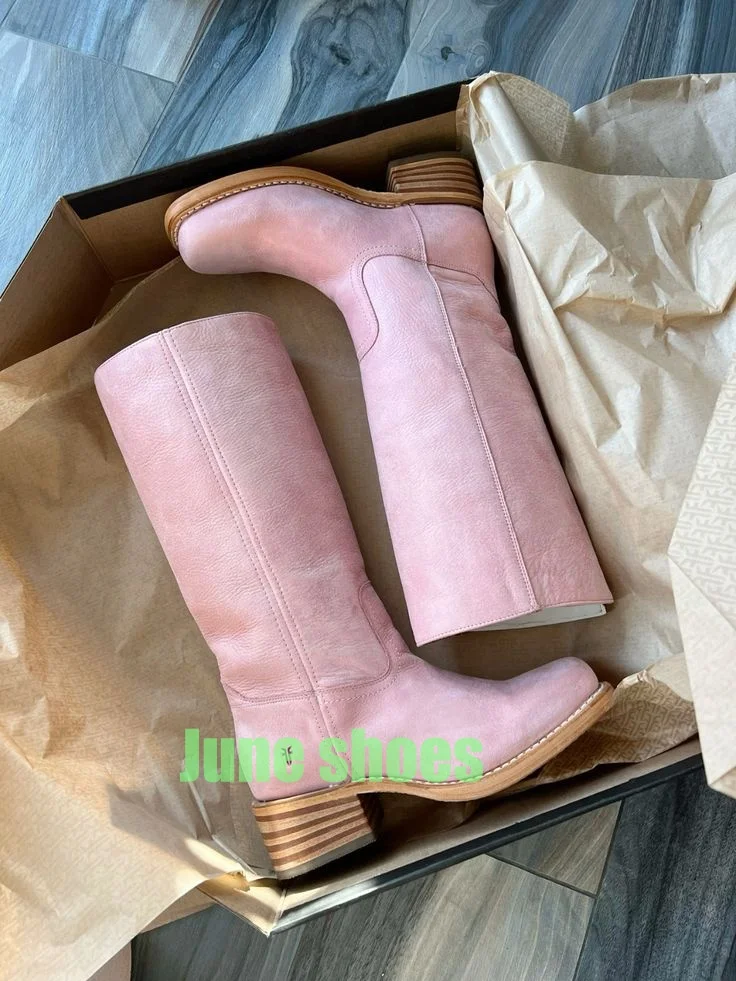 Lady Cute Cowboy Pink Chunky Heel Knee Boots Pink Mary Janes Footwear Size 34-46 Pink Pu New Arrive ...
