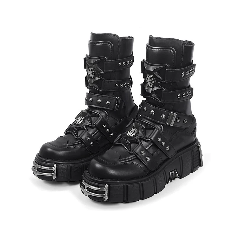Custom Unisex Rock Platform Midsole Boots Dark Punk Biker Boots Got...