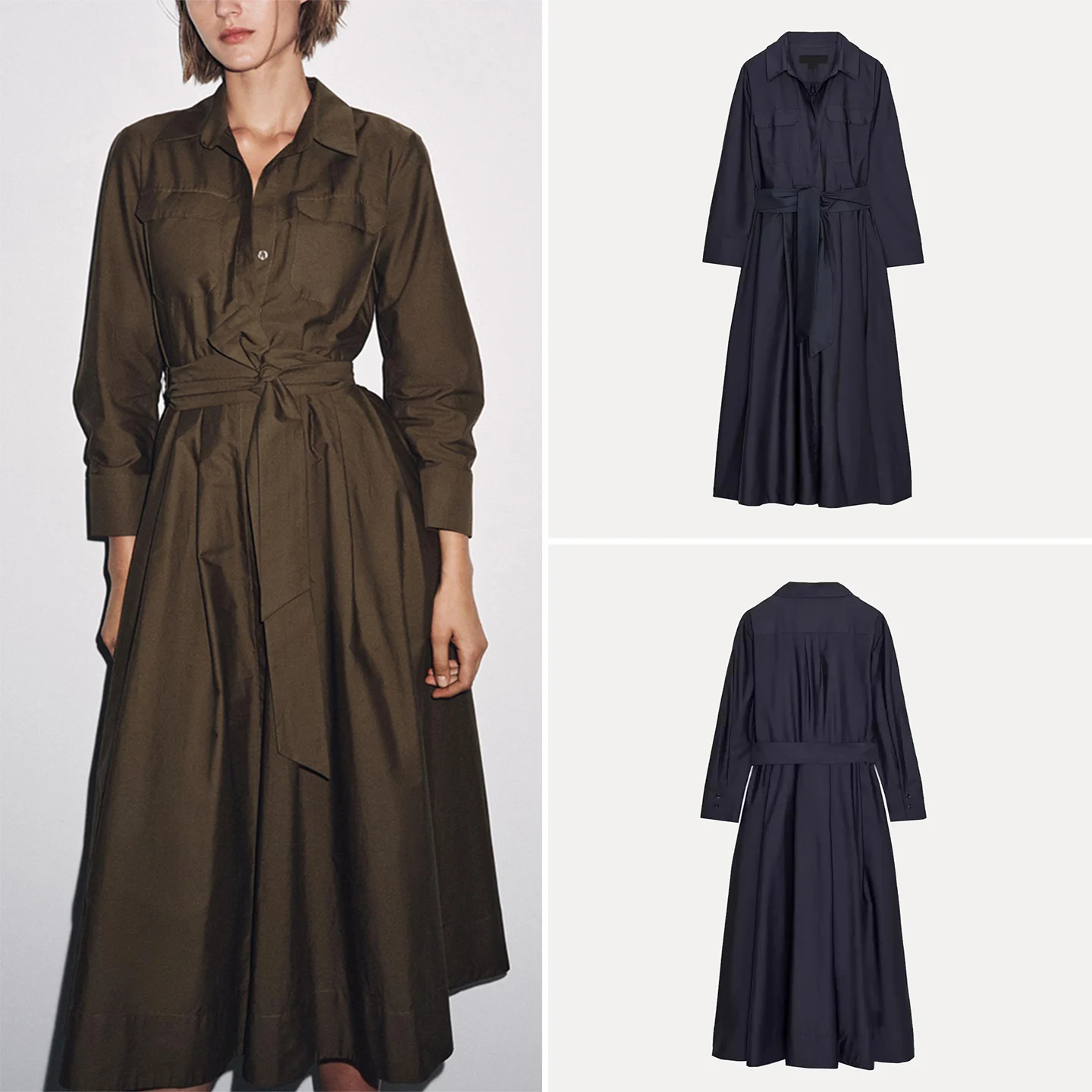 ZADATA Casual Shirt Style Dress Women's Fashionable Leisure Silk Gauze Dress Long Sleeve Daily Wear ...