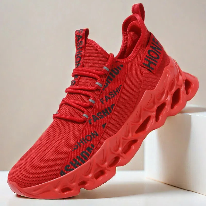 • Men's Red Fashion Sneakers, Breathable Mesh Upper, Trendy Design wi...