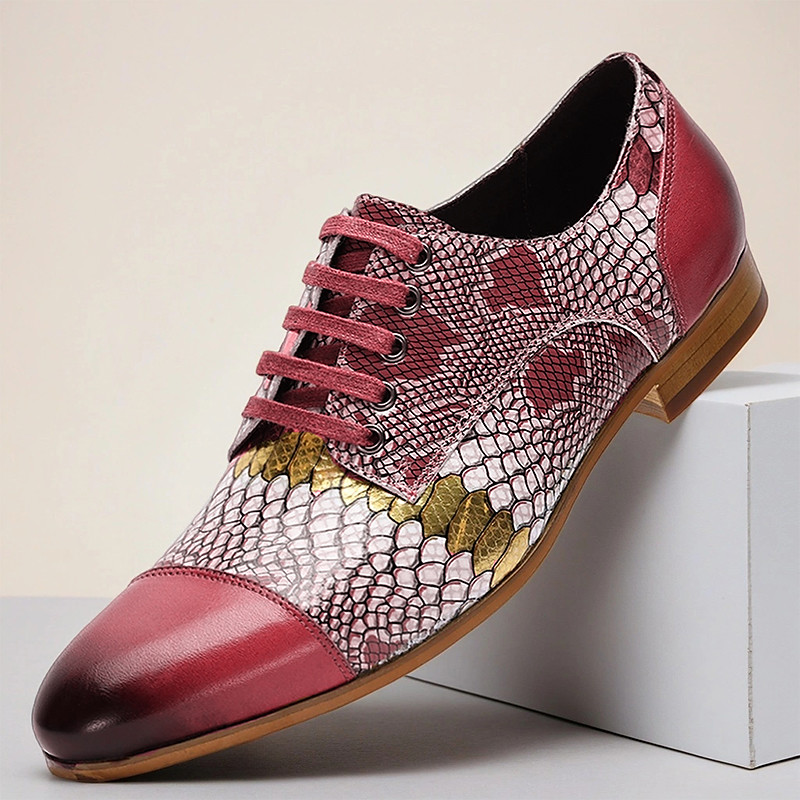 • Men's Python Print Lace-Up Shoes – Unique Snakeskin Pattern w...