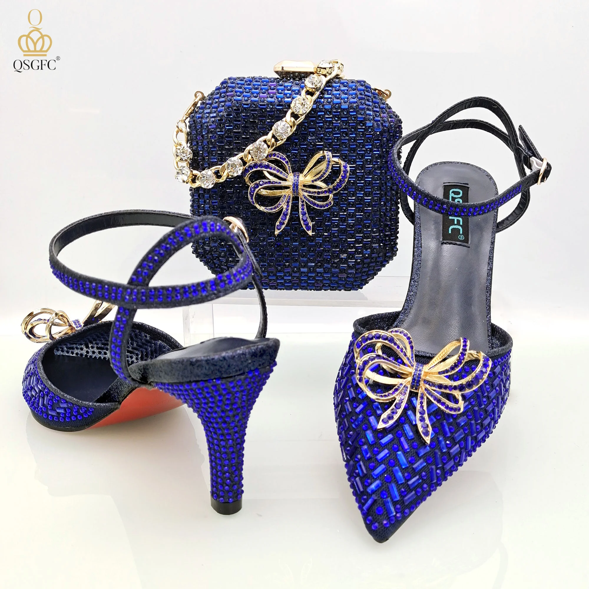 QSGFC Fashionable Small Bag With Stiletto Shoes High-Heeled Selected Big Rhinestone Sexy Shoes Beaut...