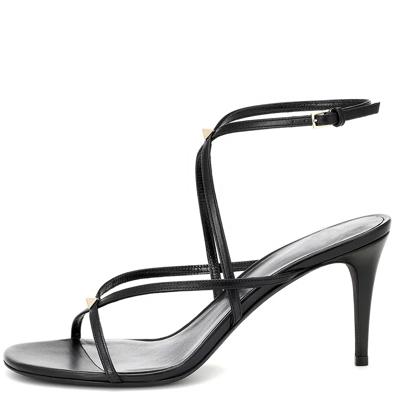 Stylish Women's Strappy Zipper High Heel Sandals Black 2024 Heels f...