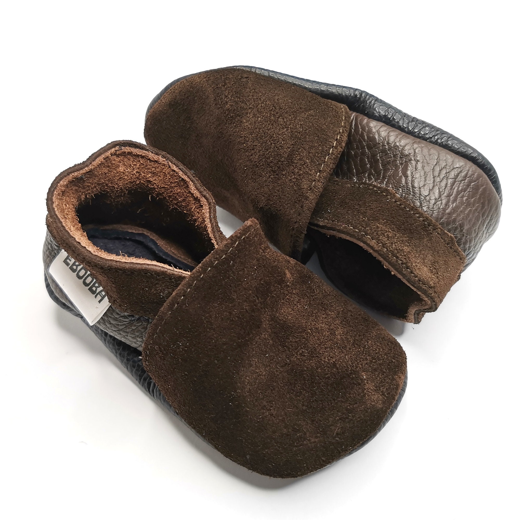 Chocolate Brown Suede Booties, Suede Baby Shoes, Ebooba, Suede Mocc...