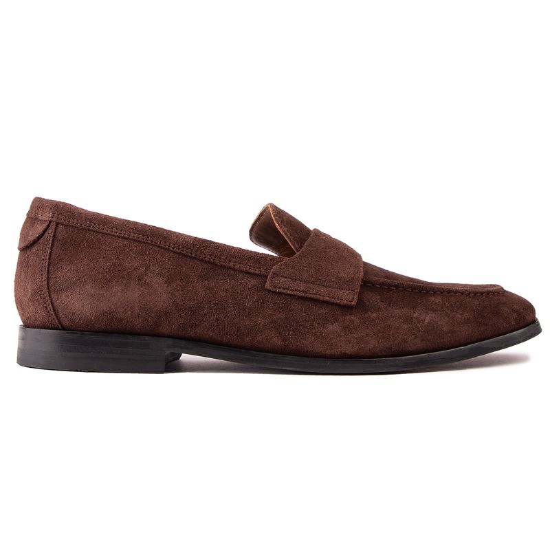 Suede upper.Leather laces.Slip on fastening.Round toe.Rubber sole.