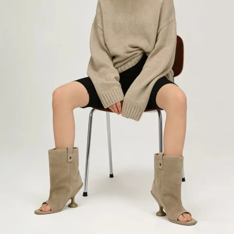 2026irregular High-heeled Wide Tube Round Toe Short Boots,European AndAmerican Niche Personality,ope...
