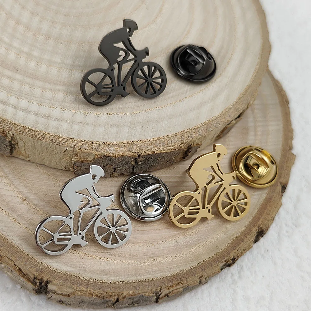 New bicycle racer men's lapel pin, 316L stainless steel gold-plated badge, black brooch for suit acc...