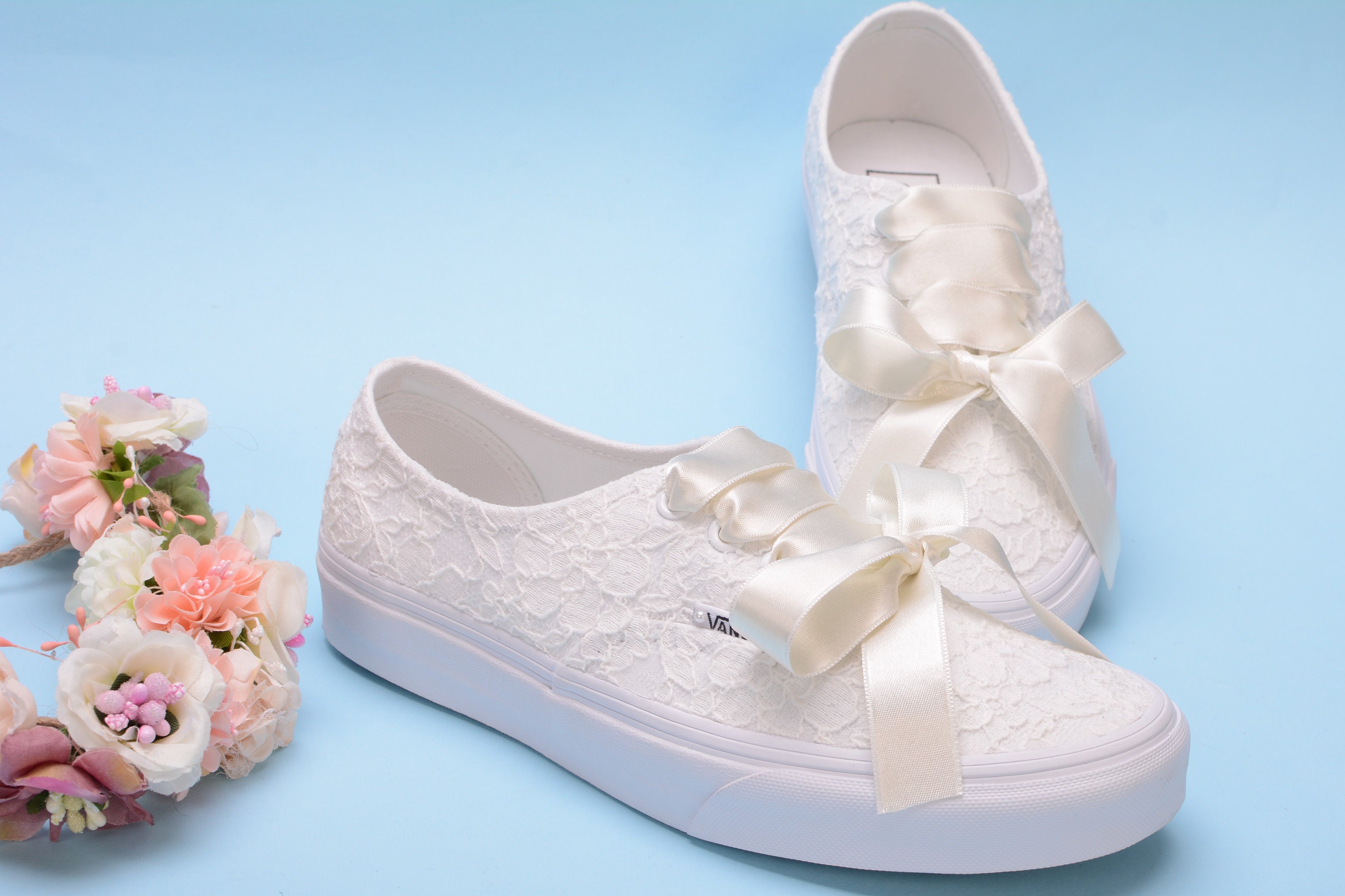 White Lace Wedding Vans / Wedding Vans Sneakers For Bride / White L...