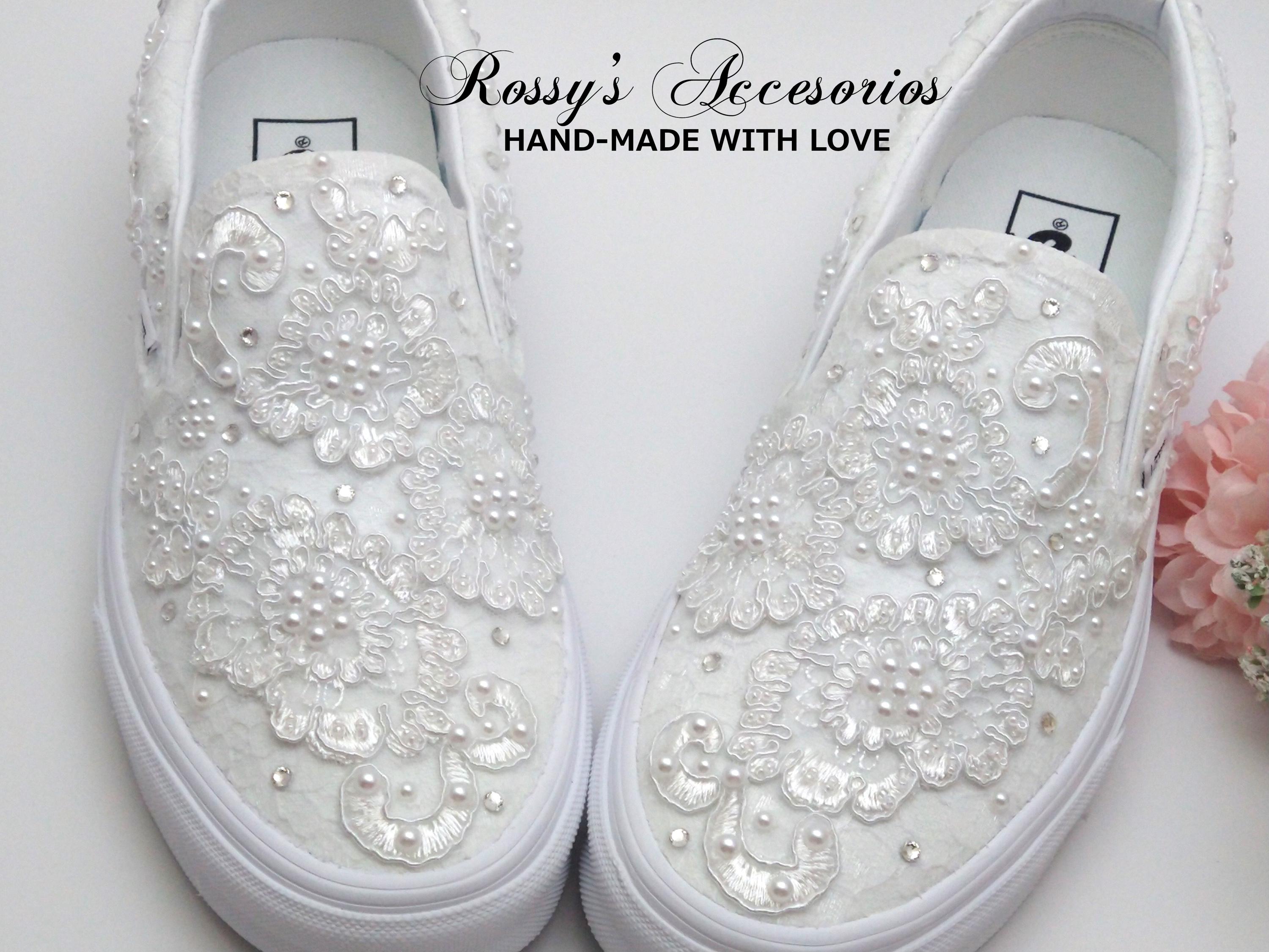 Slip On White Lace Wedding Vans / Wedding Vans Sneakers For Bride /...