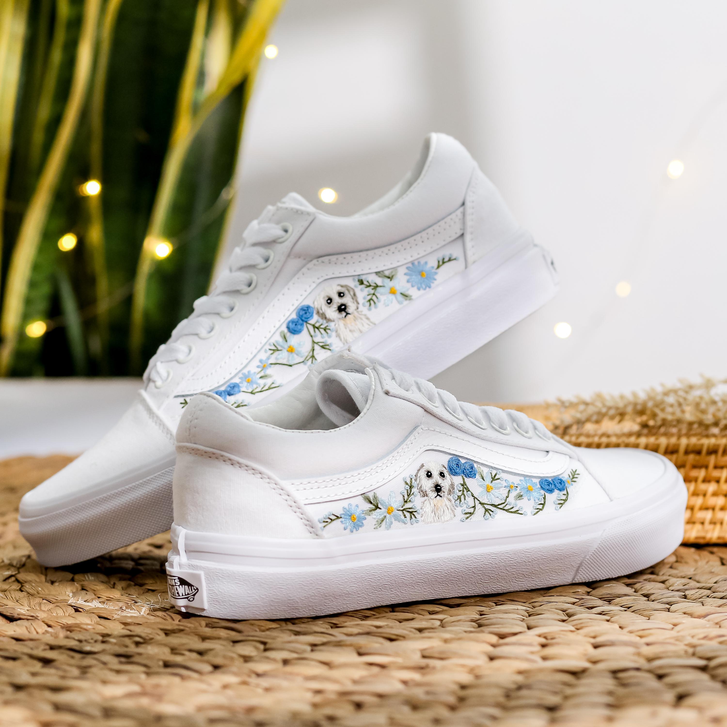 Price includes: Shoes + Embroidery as shown Wedding Vans/Custom Vans Shoes/Custom Sneakers/Embroider...