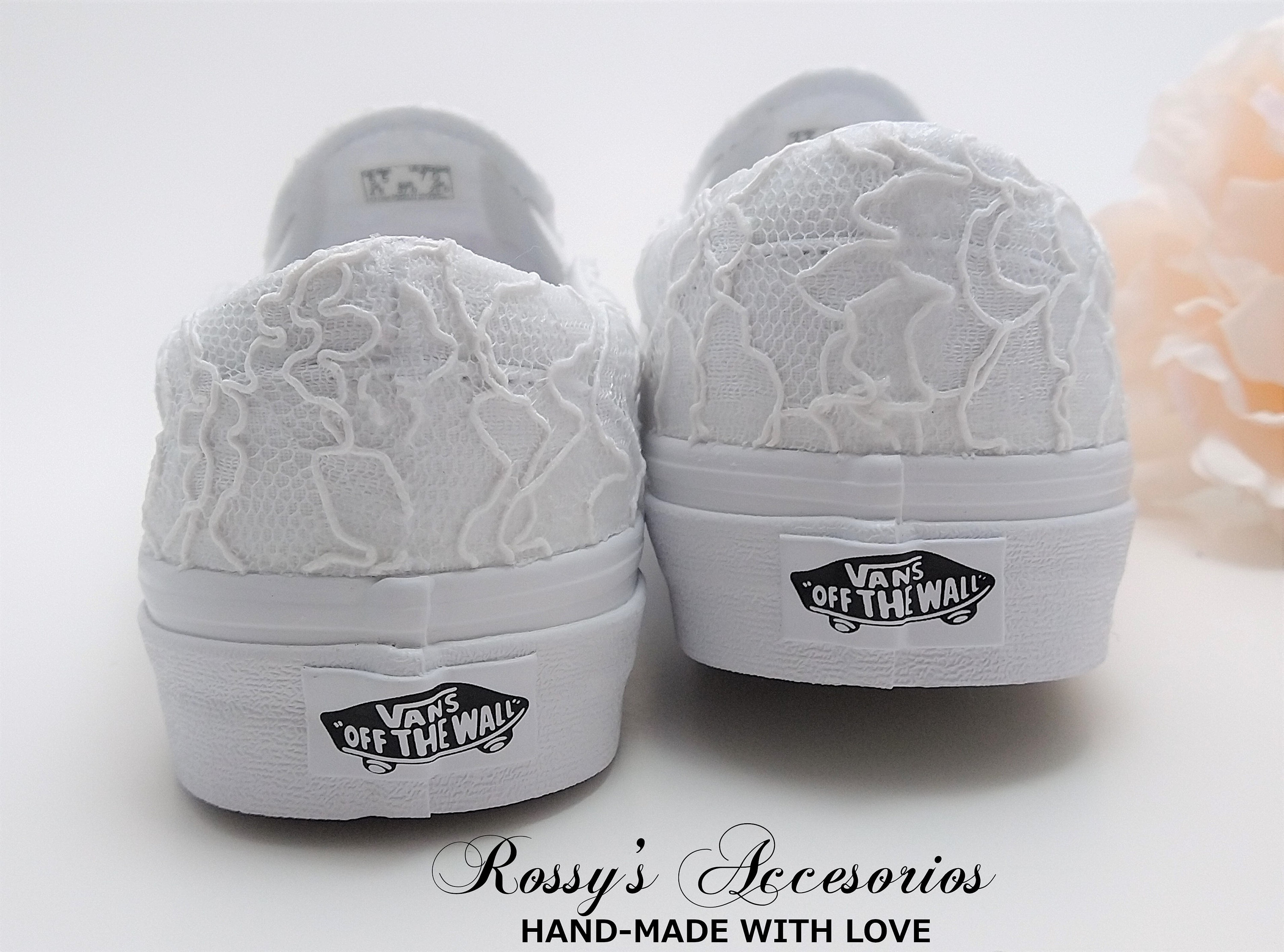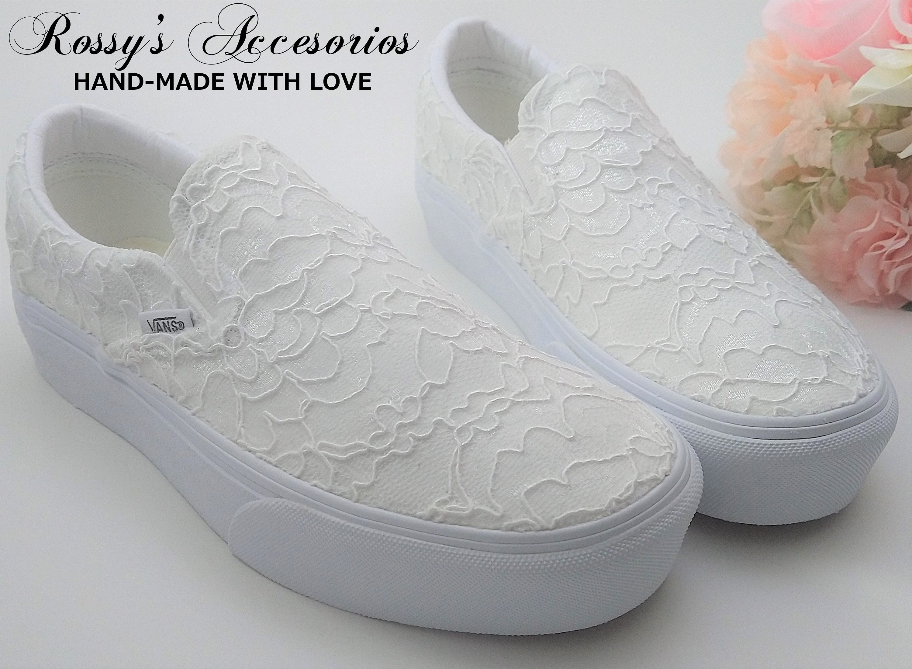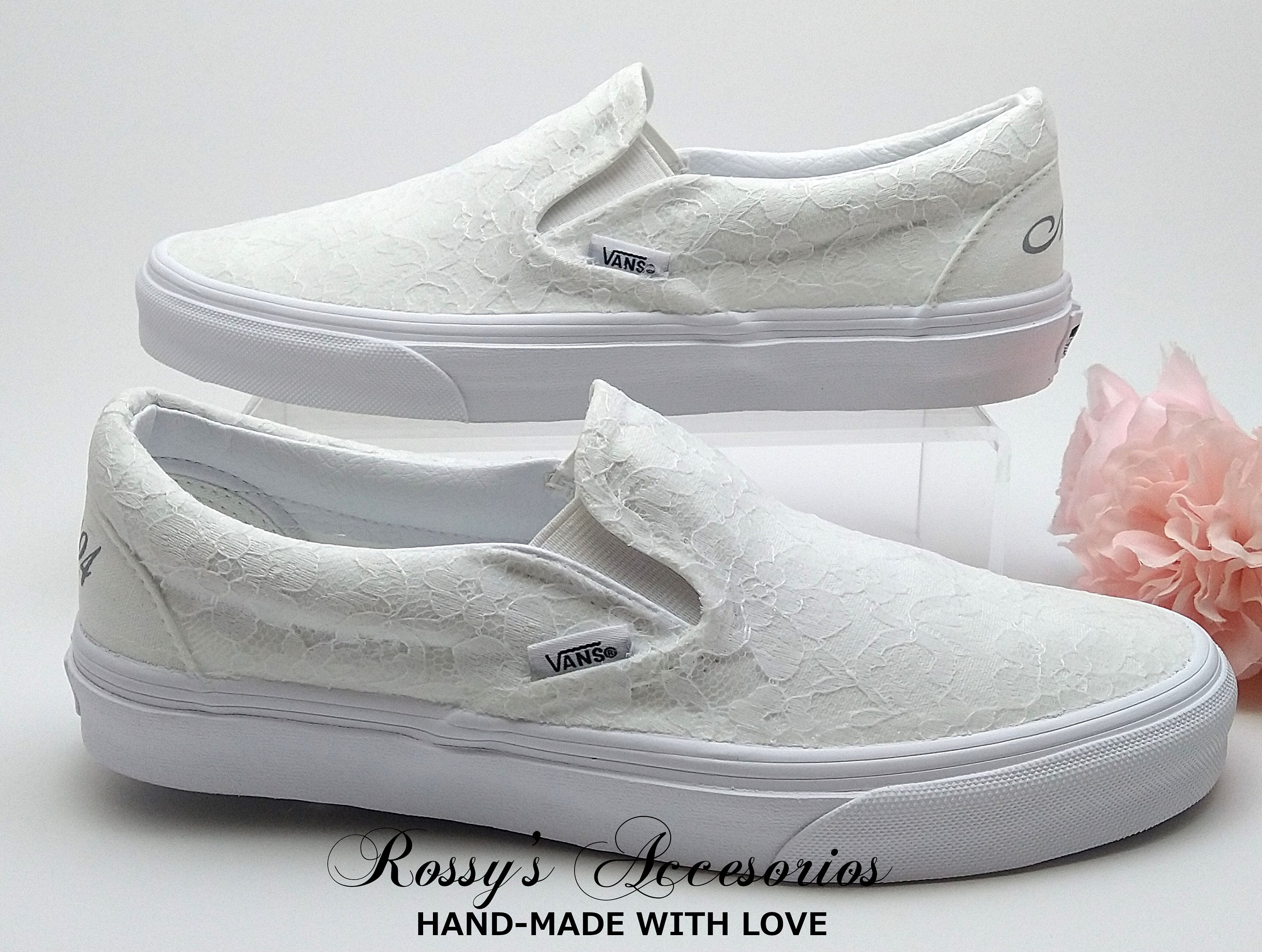 Slip On White Lace Wedding Vans / Lace Vans Slip On Sneakers / Wedd...