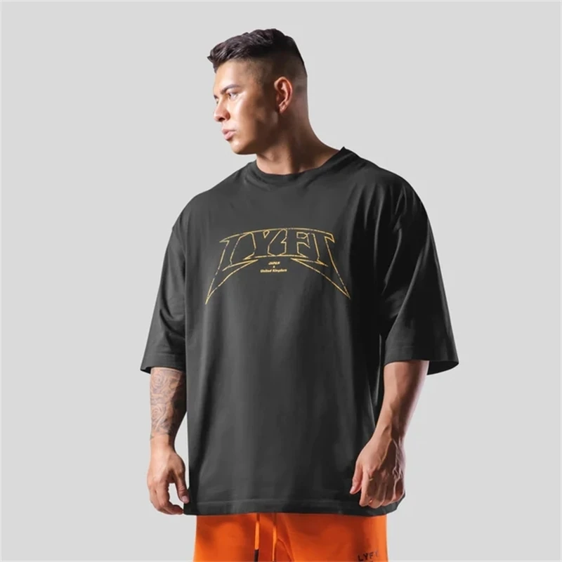 LYFT Oversized Training Men's T-Shirt Design Letters Print T Shirts For Men Loose Fashion Sport Stre...