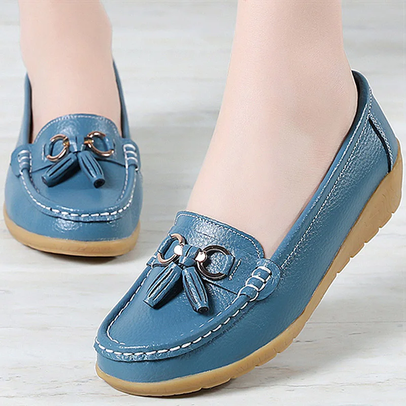 Women's Loafers White Shoes For Woman Genuine Leather Flats And Loa...
