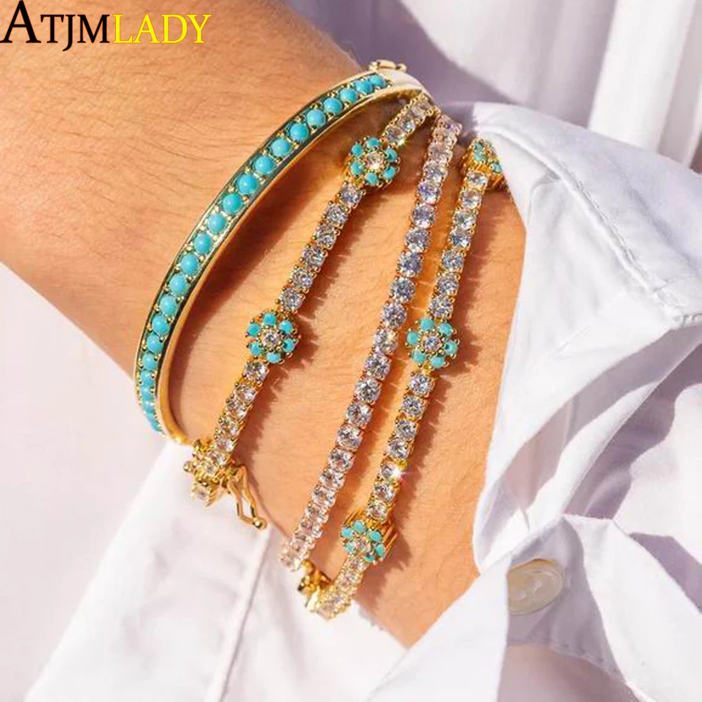 • New Arrived Rainbow CZ Colorful Flower Tennis Link Chain Bracelet F...