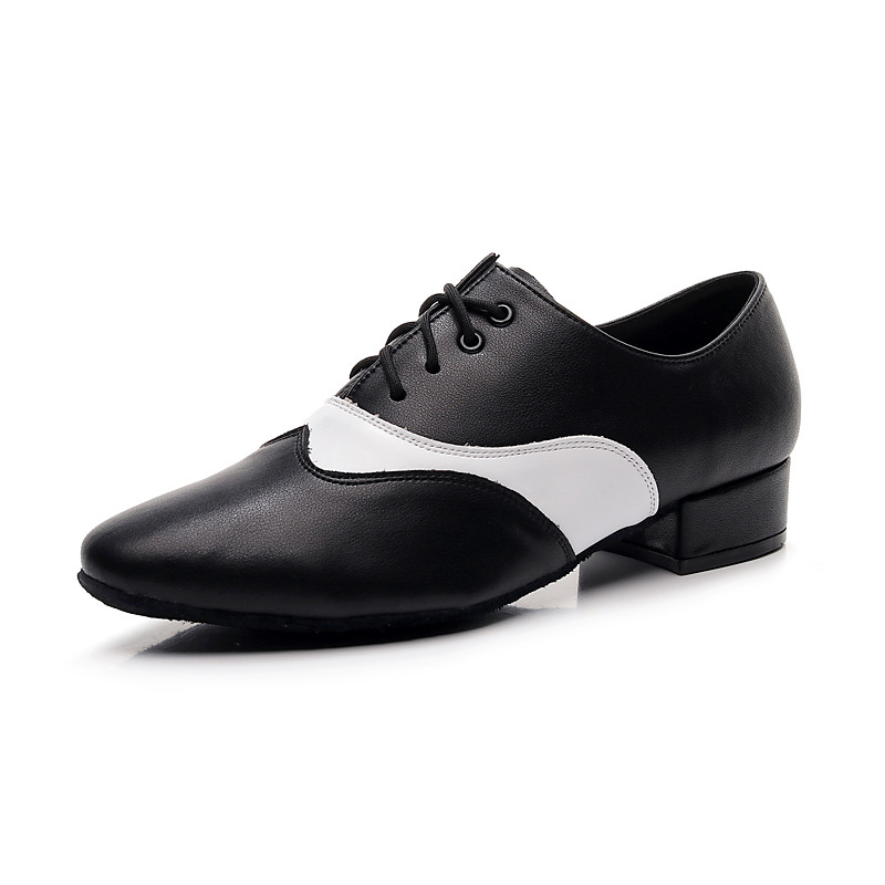 Men's Black White Faux Leather Lace-Up Ballroom Dance Shoes with Sp...