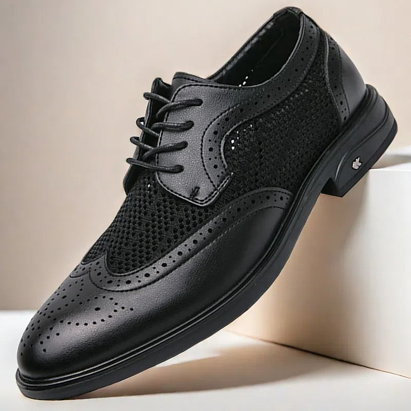 Men's Knit Mesh and Faux Leather Oxford Shoes - Lace-Up Design, Per...