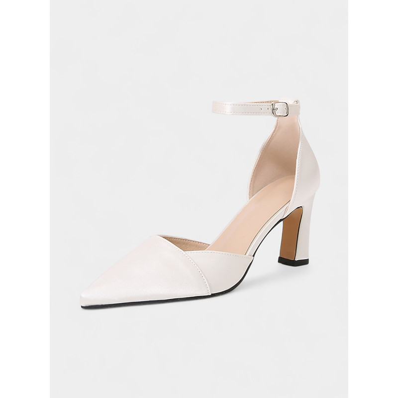 Women's Almond Satin Ankle Strap Heels with Pointed Toe and Block H...