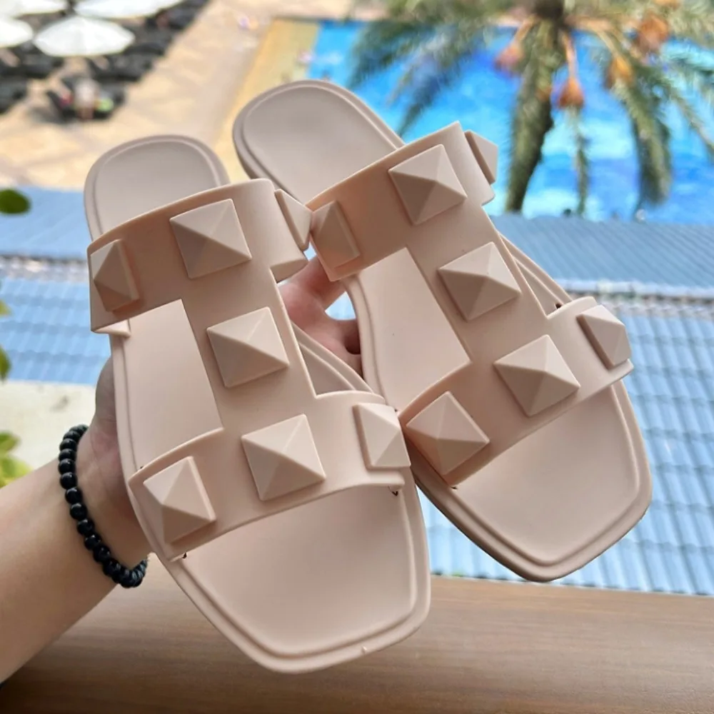 Women Slippers Rivet Slippers Women's Summer Outside Fashion Roman ...