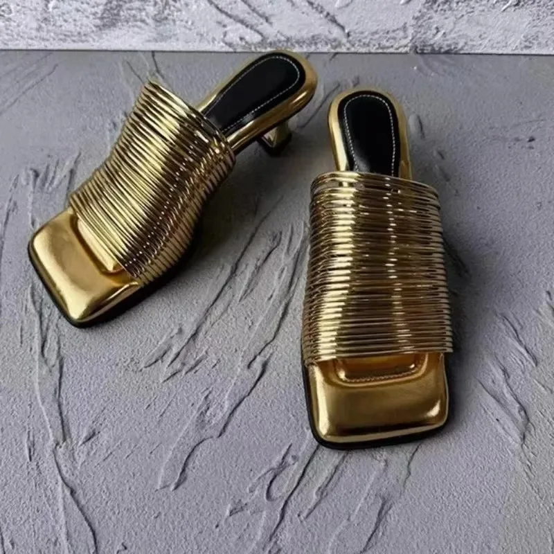 NewHigh Heels Women's Slippers Elegant Casual Square Toe Slippers Summer Shoes Zapatos De Mujer Wome...