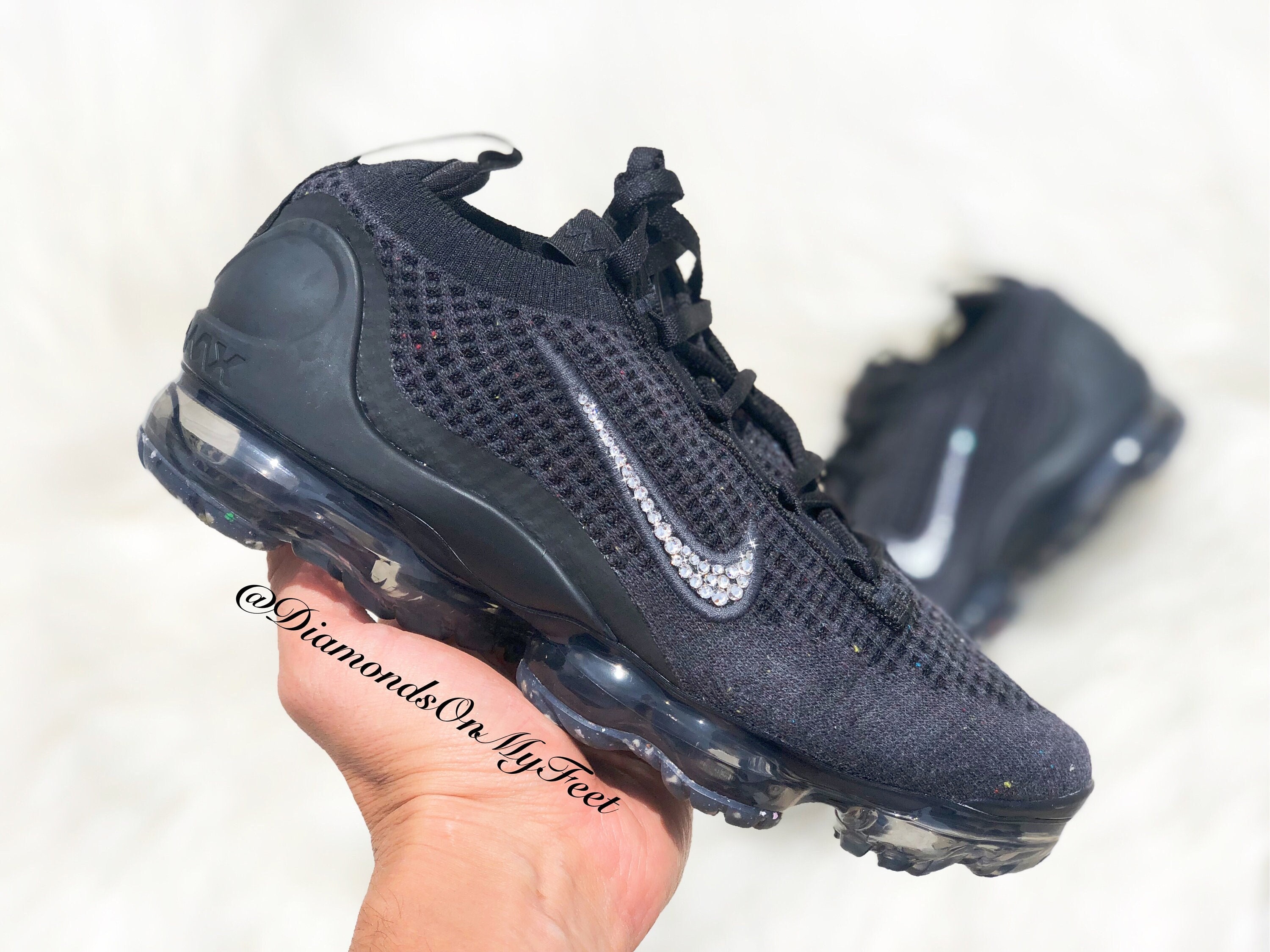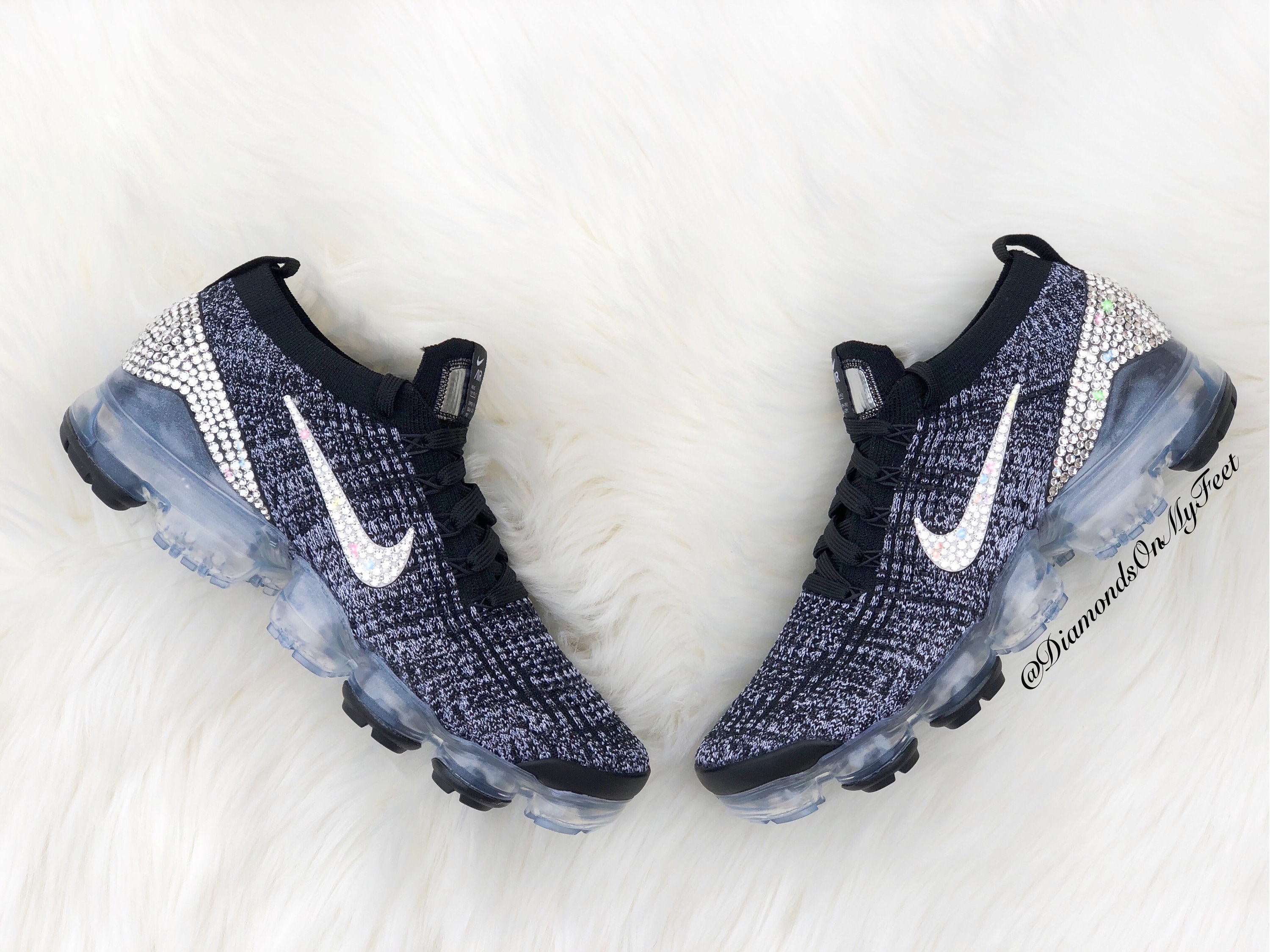 Bling Nike VaporMax Flyknit 3 Shoes Hand Customized with Genuine Swarovski Crystals. Colors: Black &...
