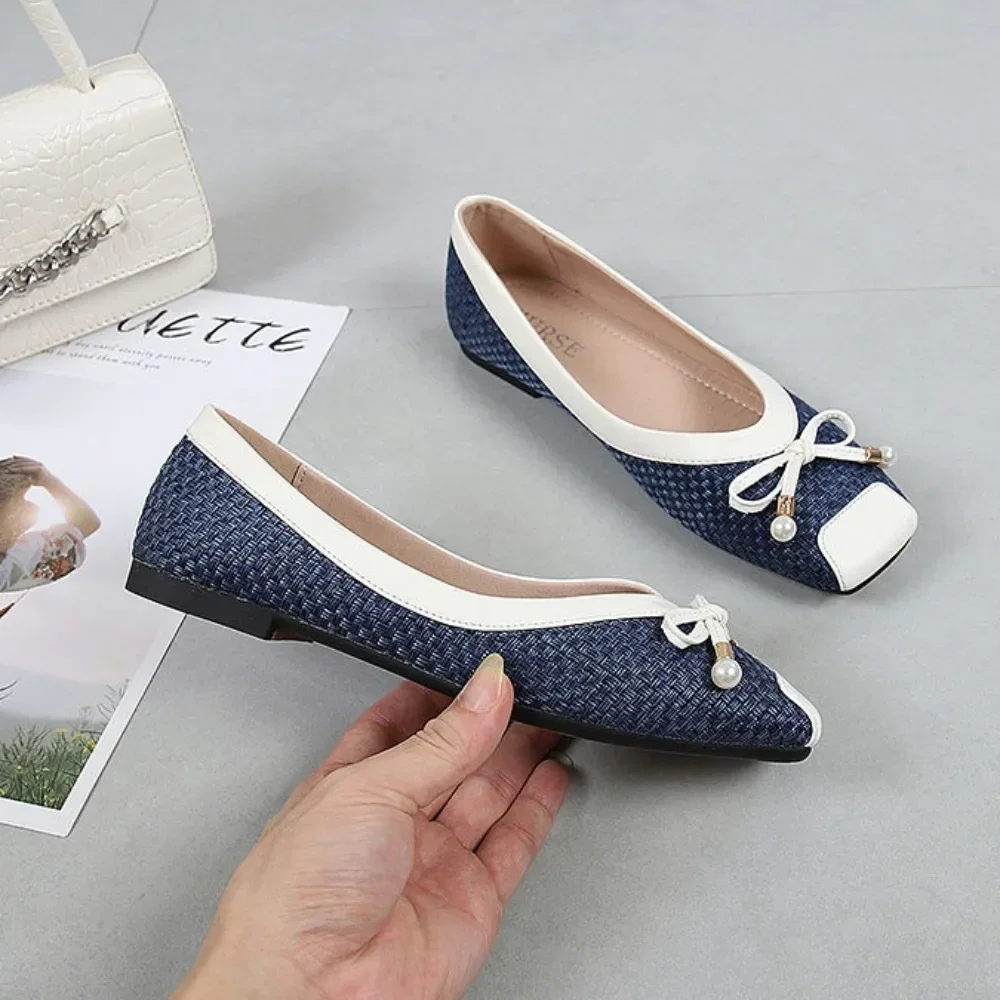 Women Flat Shoes Large Size Women's Shoes 43 44 Flat Sole Single Shoes Women 2026 New Blue Bow Shall...