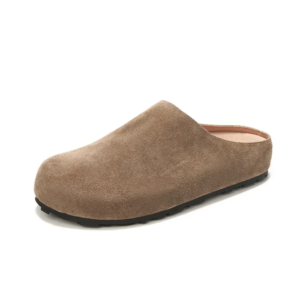 Genuine Leather Slippers Women Outside Baotou Half Slippers Female Cow Suede Leather Women Slippers ...