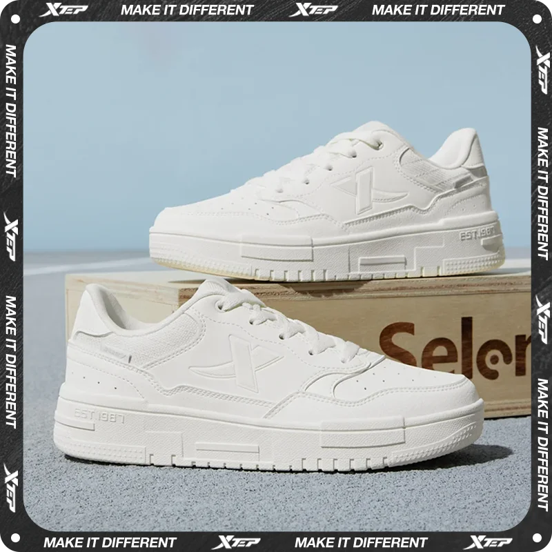Xtep Women Men Skateboarding Shoes Non-Slip Casual White Couple Skate Sneakers Male Female Luxury Br...