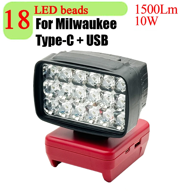 18 LED Work Light Mini Lamp Flashlight Torch Spotlight USB Type-C Power Bank for Milwaukee for M18 1...