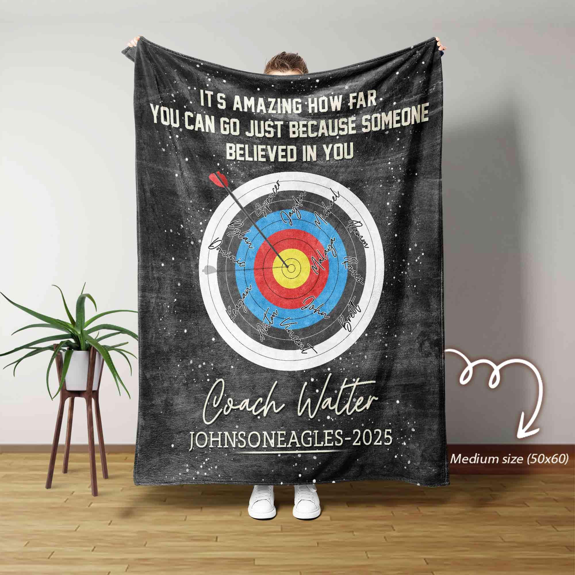 "Personalized Archery Coach Blanket, Archery Blanket, Archery Coach Thanks Blanket, Custom Gift...
